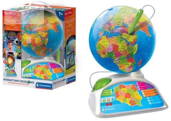Interaktywny globus Clementoni to idealna zabawa dla dziecka i całej rodziny! Po wskazaniu miejsca na mapie specjalnym długopisem, dziecko może poznać ciekawe informacje o wybranym regionie świata. Ten edukacyjny globus przybliża młodemu odkrywcy wiedzę o położeniu geograficznym, historii, stolicy, powierzchni, językach, walucie, ludności, religiach, hymnach, strefach czasowych oraz wielu innych interesujących faktach dotyczących krajów świata.