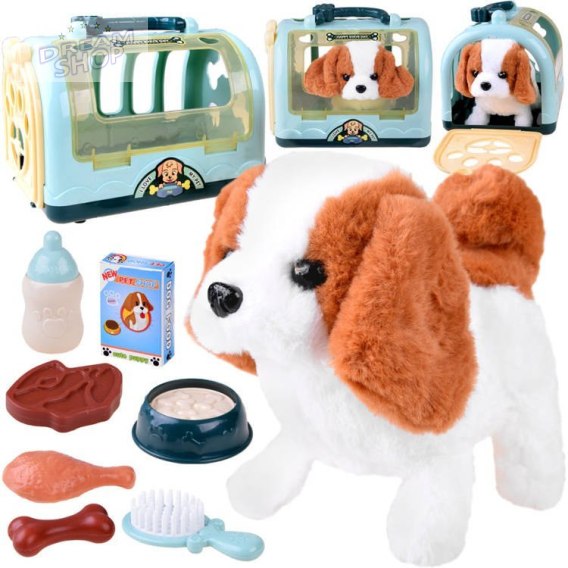 Interaktywny piesek beagle + karma + transporter akcesoria ZA4354