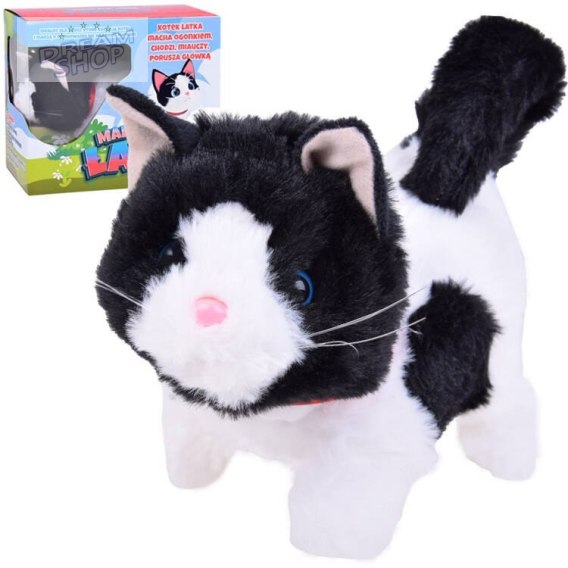 Poznaj Łatkę - uroczego interaktywnego kotka w czarno białym kolorze z czerwoną obrożą/ tasiemką na szyi. Ten wyjątkowy pluszowy przyjaciel stanie się nieodłącznym towarzyszem każdego dziecka, które marzy o własnym pupilu. Dzięki swoim funkcjom Łatka zapewnia godziny zabawy, rozwijając wyobraźnię i empatię.