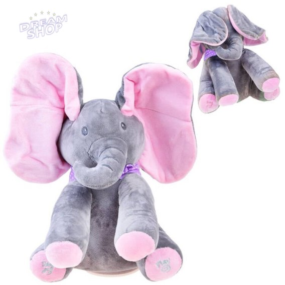 Interaktywny pluszowy Słoń maskotka Słonik zakrywa oczka śpiewa ZA3112