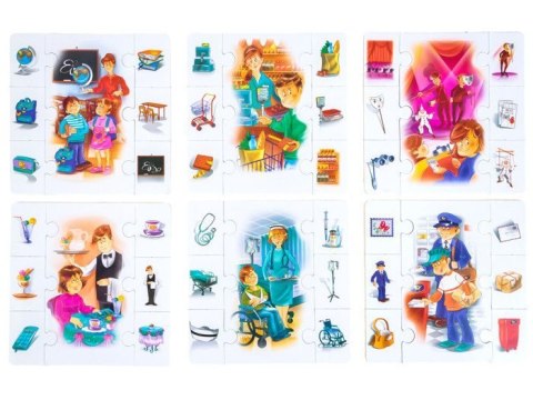 Zadaniem dziecka w tej układance jest dopasowanie puzzli z rekwizytami do odpowiednich miejsc. Zabawa może przybrać różne formy - np. dziecko może zostać poproszone o opisanie, do czego służy dany przedmiot, a następnie odnalezienie odpowiedniego elementu, który pasuje do obrazka głównego. Istnieje wiele wariantów zabawy, które rozwijają zarówno kreatywność, jak i umiejętności rozwiązywania problemów.