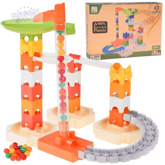 Klocki 63ele tor kulkowy kulodrom zjeżdżalnia dla kulek ZA5980