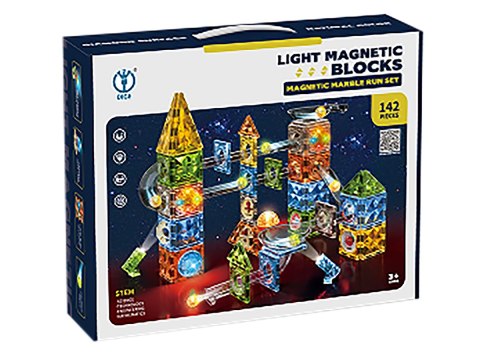 Klocki Magnetyczne Konstrukcyjne TOR KULKOWY Świecące Elementy 142 El. Kulodrom