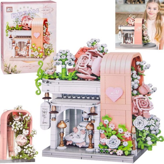 Ten niezwykle uroczy zestaw klocków to definicja romantyzmu zamknięta w budowli pełnej kwiatów, elegancji i wyjątkowych detali. Rose Meet Wedding Hall to mały klockowy sklepik weselny, który zachwyca już od pierwszego spojrzenia - pastelowe barwy, mnogość ozdobnych róż i subtelne detale sprawiają, że wygląda jak bajkowa witryna z marzeniami o najpiękniejszym dniu w życiu.