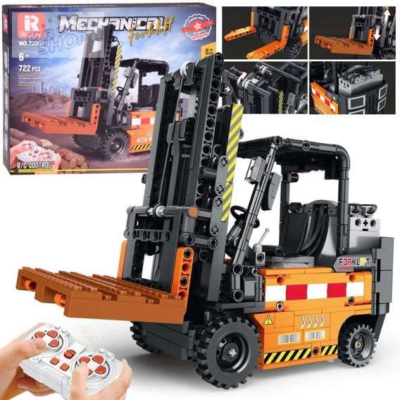 Zestaw klocków konstrukcyjnych, z którego można zbudować zdalnie sterowany wózek widłowy, to propozycja dla wszystkich miłośników techniki, mechaniki i kreatywnego budowania.