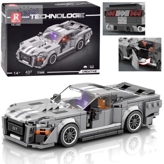 Klocki plastikowe, techniczne, samochód sportowy, pojazd, auto wyścigowe, sportowe auto, naklejki do dekoracji pojazdu w zestawie, technologie