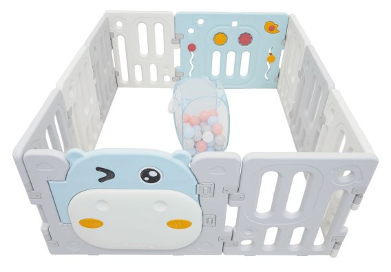 Duży, praktyczny, składany kojec modułowy dla dziecka od-6 go miesiąca życia. Z kojca możemy ułożyć dowolną konstrukcję, według własnych upodobań, bardzo łatwo się składa i rozkłada, jest stabilnyi posiada gładkie krawędzie. Wnętrze kojca wyposażono w manipulacyjne elementy takie jak przesuwane kółeczko, zębatki, piszczałkę czy kierownicę. Zestaw wykonano z trwałych i nietoksycznych materiałów, składa się z 10 paneli. Panel drzwi blokuje się, na zewnątrz uniemożliwiając otwarcie drzwi przez dziecko. Antypoślizgowe nóżki zapobiegają przesuwaniu się kojca. W kojcu twój maluszek będzie mieć wystarczającą ilość miejsca do swobodnego przemieszczania się, a jednocześnie będzie bezpieczny. W zestawie znajduje się również kosz na piłeczki i 40 piłeczek.