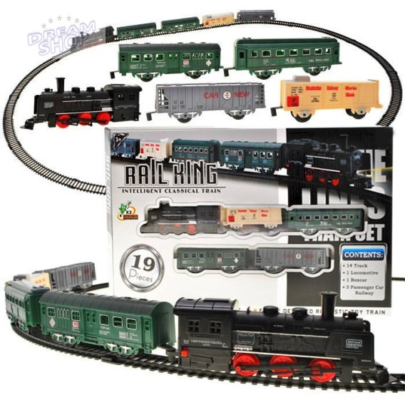 Piękna kolejka starannie dopracowana jest bezpieczną zabawką. Naszą kolejkę napędza klasyczny parowóz. W zestawie znajdują się również dwa wagony osobowe oraz dwa towarowe. Ten wspaniały model kolejki z wagonami wykonany jest z dużą dokładnością co do szczegółów. Z pewnością ucieszy to każdego początkującego fana modeli kolejek.