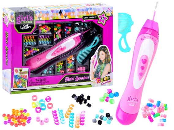Zestaw do stylizacji włosówz zaplatarką oraz modnymi koralikami na pewno przypadnie do gustu każdej dziewczynce. Zaplatarka bardzo ułatwia nawlekanie koralików na kosmyki włosów. Można bez wysiłku stworzyć niesamowite, kolorowe pasemka oraz cudowne, efektowne fryzury. Dzięki różnorodnym elementom, mała modnisia wykorzysta każdego dnia inny oryginalny pomysł na stylizację włosów. Zestaw zagwarantuje wspaniałą zabawę wspólnie z babcią, mamą, siostrą lub przyjaciółką.