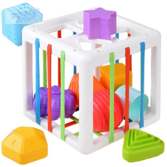 Kostka sorter jest to produkt, który z pewnością zainteresuje i przyciągnie wzrok każdego Malucha. Klocki zostały wykonane z wysokiej jakości tworzywa sztucznego w delikatnych barwach oraz kształtach trójkąt, kwadrat, koło, gwiazda, kula, kwiat i pięciokąt. Na czterech ściankach kostki umieszczone zostały kolorowe gumki zaś na piątej umieszczono ściankę z czterema otworami w różnych kształtach dziecko ma za zadanie dopasować kształt klocka do odpowiedniego otworu. Zabawa polega na wkładaniu i wyjmowaniu elementów z edukacyjnej kostki. Dziecko podczas zabawy rozwija zmysły oraz poprawia zdolności manualne. Każdy z klockówsięwyróżnia, co budzi ciekawość dziecka na tyle, by chciało je wyciągnąć i włożyć z powrotem do sortera. Zabawka łączy najlepsze cechy zabawek manualnych i rozwijających zdolność myślenia.