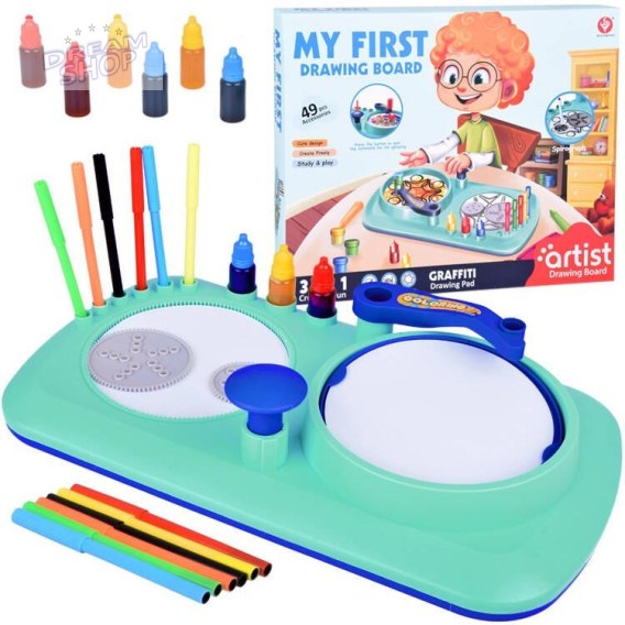 Pozwól dziecku odkrywać świat sztuki i kreatywności dzięki interaktywnej tablicy rysunkowej "My First Drawing Board". Ten wyjątkowy zestaw 3 w 1 oferuje zabawę w rysowanie, malowanie graffiti oraz tworzenie niesamowitych wzorów dzięki spirografowi.