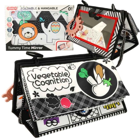Książeczka mata sensoryczna kontrastowa do łóżeczka lusterko gryzak