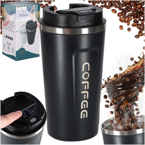 Kubek termiczny z ustnikiem termos LED 500ml czarn