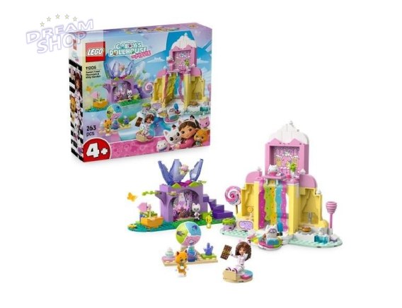 Zestaw Łakociowa Góra i Kiciowy Ogródek (11205) dla dzieci to pomysłowy prezent pełen figurek LEGO(R) Koci domek Gabi. Ten zestaw LEGO do zabawy w odgrywanie ról to idealny pomysł na prezent dla dziewczynek i chłopców w wieku od czterech lat. Kreatywny zestaw do zabawy zawiera dwie lokalizacje z filmu i wiele figurek LEGO, w tym Gabi, Kiciusia Pandusia i Wróżkotkę. Łakociowa Góra otworzy przed maluchami magiczny świat słodkich smakołyków. Postacie mogą zjeżdżać po kolorowym wodospadzie na pączkach. Kiciowy Ogródek to fantastyczne miejsce, w którym Wróżkotka siedzi na swoim kryształowym tronie kwiatowym, a dzieci mogą znaleźć w okolicy ukryte klejnoty. Kolorowe ilustrowane instrukcje, duży klocek startowy i oddzielne torebki zawierające po jednym modelu sprawiają, że mali konstruktorzy mogą szybko i przyjemnie zbudować zestaw i oddać się zabawie. Zestawy LEGO do odgrywania ról dla dzieci w wieku od czterech lat to świetna okazja dla dorosłych na udział w budowaniu i zabawie z dziećmi. Zestaw zawiera 263 elementy.