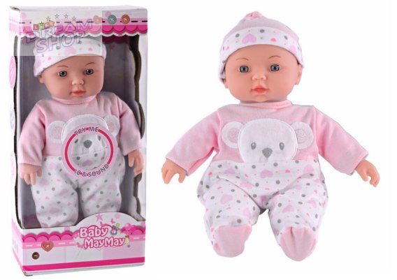 Lalka Bobas Różowa Piżamka z Misiem Czapeczka Dźwięki