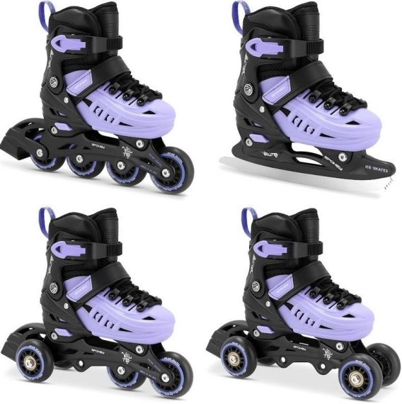 Regulowane rolki 4w1 to rolki, wrotki, rolko-wrotki oraz łyżwy w jednym. But posiada trójstopniowy system zapinania i twardą skorupę, które gwarantują doskonałe dopasowanie, komfort i bezpieczeństwo podczas jazdy. Wyposażone w półprzezroczyste kółka, które nadają im nowoczesny, stylowy wygląd. Jak ustawić rozmiar? Wystarczy odpiąć rzep, nacisnąć PUSH i wysunąć but na odpowiednią odległość.