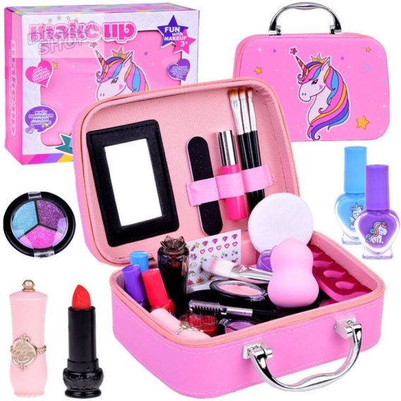 Po skończonym makijażu, zabawie w charakteryzację mała wizażystka może wszystko ładnie spakować do kuferka z jednorożcem. Totalny Full wypas! Całość prezentuje się bardzo atrakcyjnie i zapewni mnóstwo atrakcyjnie spędzonego czasu, kreowania swojego stylu, wizerunku, eksperymentowania!
