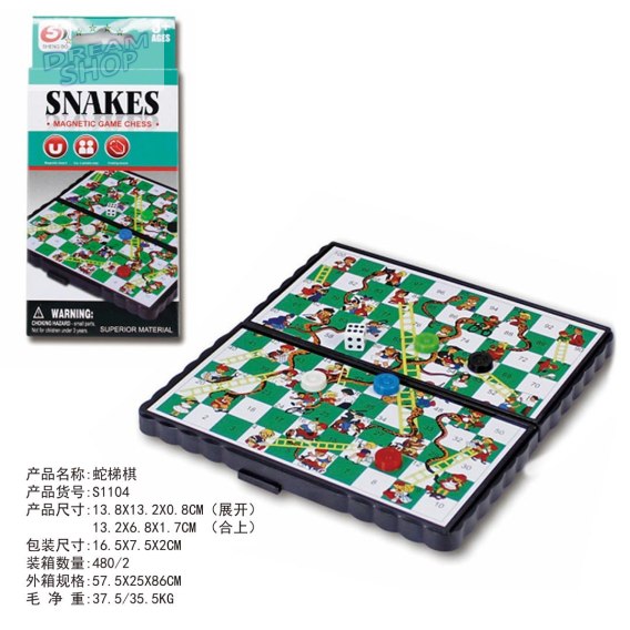 Magnetyczna gra Drabiny i Węże dla dzieci od trzeciego roku życia. Gra jest niewielkich rozmiarów, dzięki czemu można ją zabrać wszędzie ze sobą, pionki są magnetyczne, dobrze trzymają się planszy. W tym zestawie metalowe pudełko gry służy nam za planszę, dzięki czemu gabaryt gry ograniczony jest do minimum.