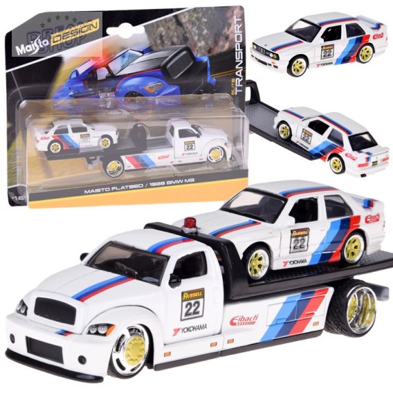 Kultowe BMW M3 1988 w połączeniu z lawetą Maisto Flatbed.