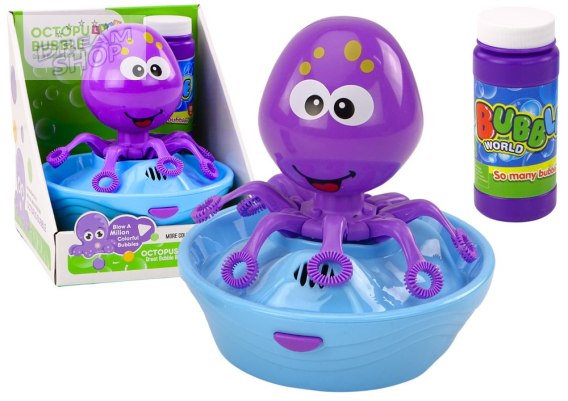 Wyjątkowa maszynka w kształcie fioletowej ośmiornicy wystrzeli setki baniek mydlanych. Doskonała zabawa w ogrodzie i na placu zabaw. Po wlaniu płynu i uruchomieniu, macki ośmiornicy obracają się i wypuszczają bańki.