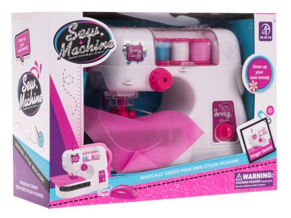 Interaktywna maszyna do szycia z efektami dźwięku i światła dla dzieci od 3-go roku życia. Zabawka wykonana z solidnych materiałów i bezpieczna dla dziecka. Maszyna posiada igłę w zabudowie, która zabezpiecza, przed skaleczeniem się dziecka. Zabawkę wyposażono w praktyczną myszkę uruchamiającą maszynę, pokrętło do podnoszenia igły i podnośnik stopki. Podczas pracy maszyny, świeci się światełko. W zestawie z maszyną znaleźć możemy również 3 szpulki nici, nawlekacz do nici, metr krawiecki i 2 kawałki materiału. Zabawa maszyną wspomaga rozwój koordynacji wzrokowo-ruchowej i kreatywności. Maszyna zasilana jest bateriami typu 4 x 1,5V AA, baterii brak w zestawie.
