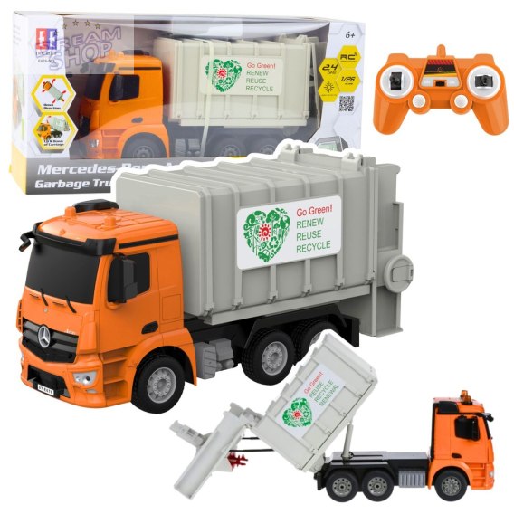 Samochód wyposażono w system zdalnego sterowania 2,4 GHz, dzięki któremu jazda jest płynna i bez zakłóceń. Model umożliwia wykonywanie pełnych manewrów, a dodatkowe funkcje - podnoszenie i opróżnianie kosza, kompresowanie śmieci i przechylanie naczepy - sprawiają, że zabawa staje się jeszcze bardziej realistyczna. Śmieciarka porusza się z bezpieczną prędkością poniżej 3,6 km/h, dzięki czemu nadaje się do zabawy zarówno w domu, jak i na zewnątrz.