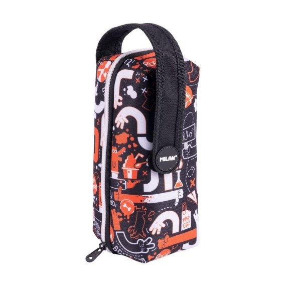 Piórnik MILAN 5 w 1 z wyposażeniem/multipiórnik z kolekcji Fingers. Multipiórnik składa się z 5 elementów: 1 dużej saszetki - pokrowca zapinanego na suwak z uchwytem zapinanym na rzep oraz 4 mniejszych piórników-saszetek. W środku znajdują się 4 piórniki z wyposażeniem przyczepiane na rzepy, które można używać osobno lub jako całość. Kolekcja Fingers inspirowana jest wyrazistymi gestami uniwersalnej komunikacji i sztuczkami rąk, łącząc kolory czarny, pomarańczowy i biały w zabawny nadruk. W zestawie przybory szkolne: 1 gumka 4024, 2 temperówki AFILA, 1 ołówek grafitowy HB, 3 długopisy P1 (niebieski, czarny i czerwony), 1 linijka 15 cm, 12 trójkątnych kolorowych kredek i 12 filamastrów ze stożkową końcówką. Przy produkcji piórników użyto najlepszych materiałów, bardzo wytrzymałych suwaków oraz wzmocnionych nici. Niepowtarzalne wzornictwo. Multipiórnik może być wykorzystywany na wiele sposobów (po wyjęciu wyposażenia), np. jako multikosmetyczka, a duża saszetka - pokrowiec, np. jako torba na drugie śniadanie lub inne drobiazgi. Skład: tkanina zewnętrzna i wewnętrzna podszewka 100% poliestru. Rozmiar piórnika: 22,5 x 11,5 x 11 cm.