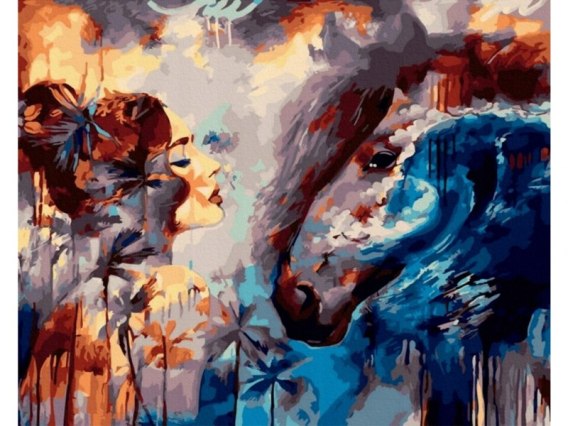 OBRAZ MALOWANIE PO NUMERACH RAMA 50x40cm SPOJRZENIE - KOBIETA I KOŃ