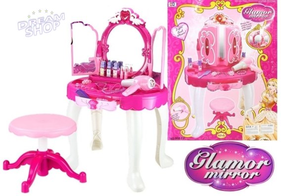 Dziewczęca toaletka jest rewelacyjnym pomysłem na prezent dla każdej małej damy. Ten uroczy, kolorowy zestaw jest bardzo estetyczny, acz zdobny, co pozwoli każdej dziewczynce na poczucie się jak księżniczka. Zabawka została zaprojektowana z myślą o najmłodszych dziewczynkach, dlatego wyprodukowano ją z atestowanych, w pełni bezpiecznychmateriałów. Konstrukcja toaletki oraz dołączonych do zestawu akcesoriów, składa się z przyjemnych dla oka, opływowych kształtów pozbawionych ostrych zakończeń, a także pięknych, cukierkowych barw. Dziecięcy pulpicik z lustrem posiada atest CE i jest przeznaczony dla wszystkich modniś, które ukończyły 3. rok życia.