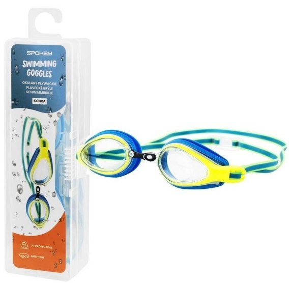 Okulary do pływania wykonane są z wytrzymałych materiałów. Wyposażone w system Antifog, dzięki któremu okularki nie parują, co zapewnia doskonałą jakość widzenia oraz w filtr przeciwsłoneczny UV, który chroni przed szkodliwym promieniowaniem. Dzięki miękkim, silikonowym uszczelkom, okulary optymalnie przylegają do twarzy, co zapobiega wpływaniu wody do środka okularów. Podwójny silikonowy pasek rozkłada naprężenia.