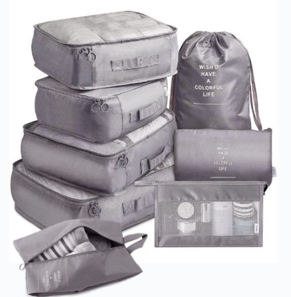 Organizery do walizki zestaw podróżny 8 sztuk akcesoria do przechowywania ubrań torby wodoodporne kosmetyczka worek na buty szar