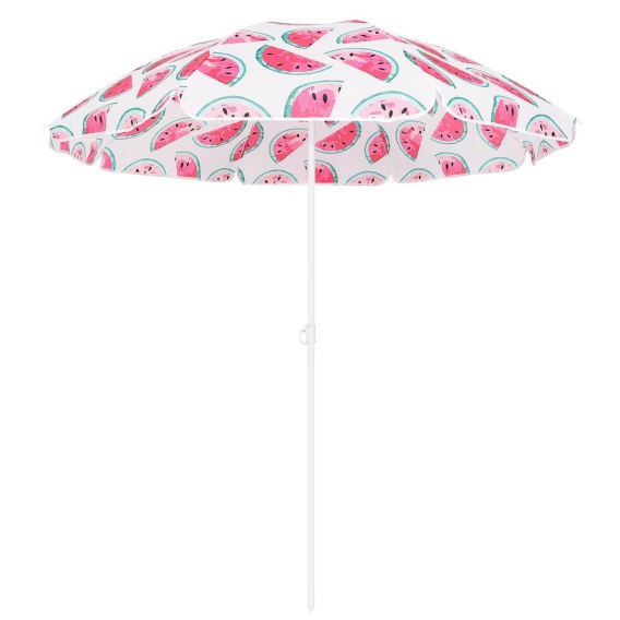 PARASOL PLAŻOWO BALKONOWY 160CM ARBUZ 1048789 wykonany z mocnego poliestru o szerokiej czaszy ok.160 cm, zapewni cień i skutecznie ochroni przed palącym słońcem i lekkim deszczem.