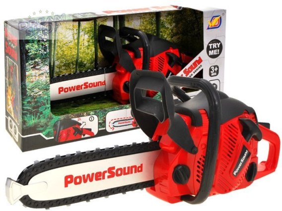 Działanie zabawki: Piłę uruchamia się lekko pociągając "linkę od rozrusznika" znajdującą się z lewej strony. Usłyszymy wówczas rozruch sprzętu, a następnie trzymając piłę za rączkę wciskamy przycisk, który wprawia w ruch łańcuch piły. Warkot, który wydaje zabawka, jest bardzo realistyczny i zapewne spodoba się każdemu małemu chłopcu.