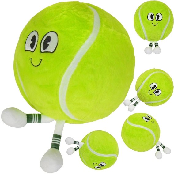 Pluszowa piłka Emoji 23 cm w formie zielonej piłki tenisowej z uroczymi nóżkami i wesołą buźką, która zachęca do ruchu i wywołuje uśmiech od pierwszej chwili.