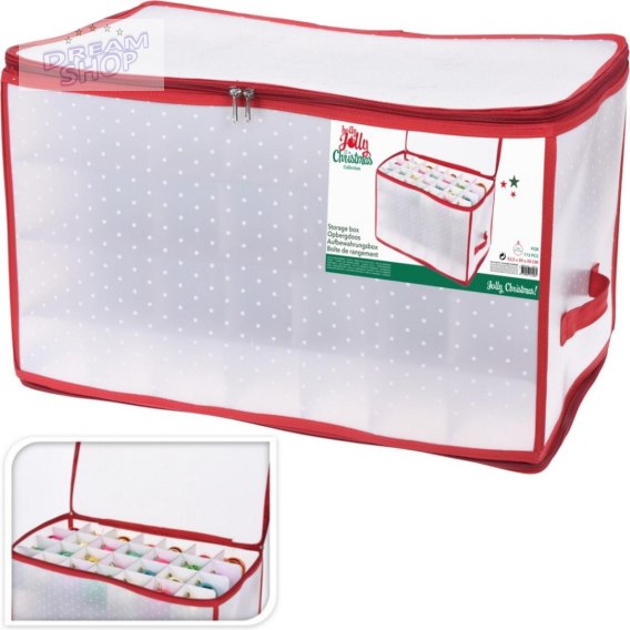 Pudełko posiada 112 przegródek, zmieścisz więc w nim 112 bombek. Zamknięte na zamek błyskawicznyzapewni długotrwałą ochronę ozdób, chroniąc je nie tylko przed stłuczeniem, ale też przed kurzem i wilgocią. Twoje bombki przez lata będą wyglądały jak nowe, gotowe na każdą kolejną świąteczną dekorację.