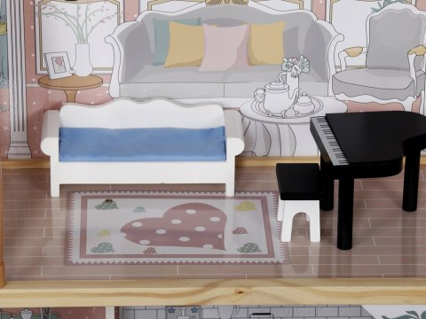 Niezwykle duży, drewniany domek w stonowanych, pastelowych kolorach to wymarzona zabawka dla każdej małej dziewczynki. Dzięki solidnej konstrukcji i eleganckiemu designowi domek ten zapewni wiele lat kreatywnej zabawy.