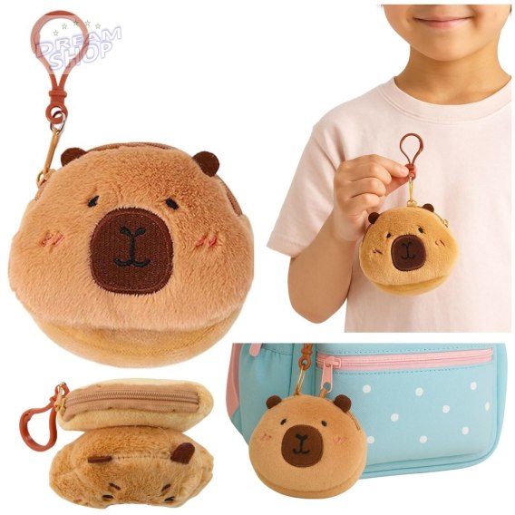 Uroczy pluszowy portfelik w kształcie kapibary to idealny gadżet dla dzieci i miłośników tych sympatycznych zwierzaków! Wykonany z miękkiego, przyjemnego w dotyku materiału, doskonale sprawdzi się jako portmonetka na drobne monety, biżuterię, małe akcesoria lub inne skarby.