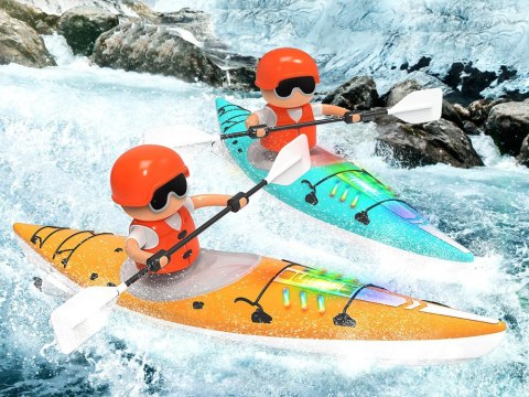 Realistyczna figurka wioślarza porusza wiosłami w rytm ruchu kajaka, co czyni tę zabawkę jeszcze bardziej interaktywną i fascynującą. Plastikowa konstrukcja i wodoodporne materiały gwarantują długie godziny zabawy zarówno w domu, jak i na świeżym powietrzu.