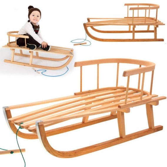 Polskie Sanki drewniane z oparciem tradycyjne ze sznurkiem SP0368