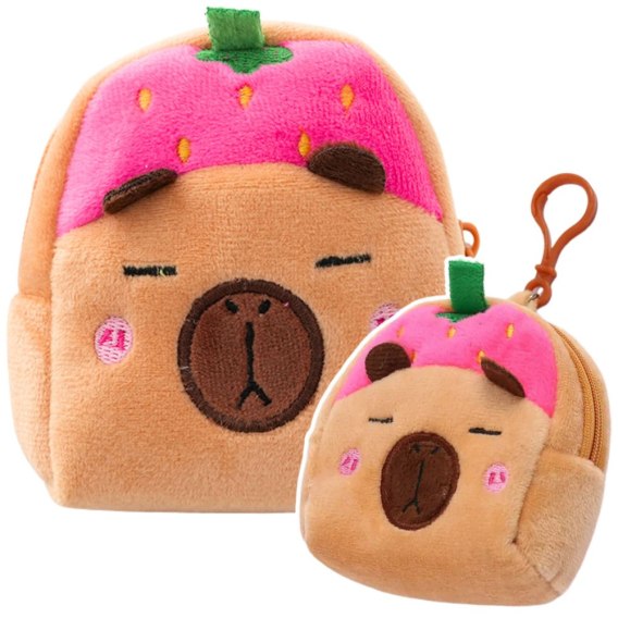 PLUSZOWY PORTFELIK KAPIBARA TRUSKAWKA RÓŻOWA Z BRELOKIEM