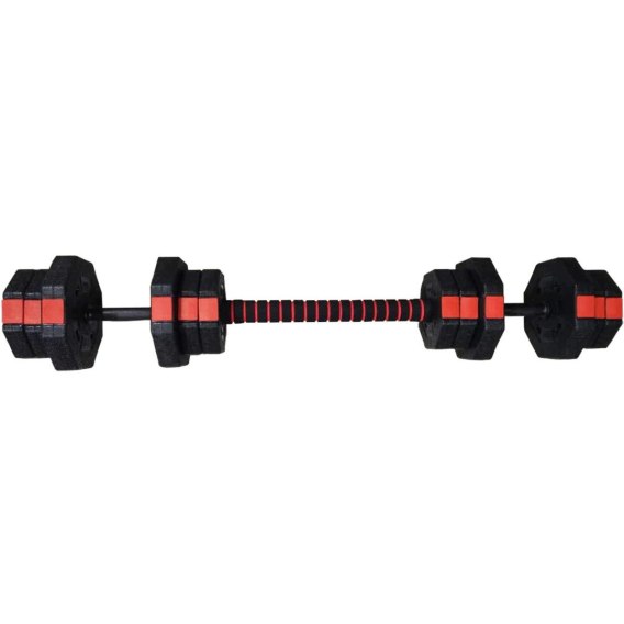- zestaw ma możliwość złączenia dwóch krótkich gryfów w klasyczną sztangę