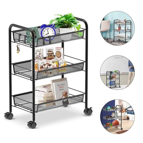 Halsen to wielozadaniowy regał, który sprawdzi się w każdych warunkach. Idealny do kuchni, łazienki, salonu czy sypialni. Jego przemyślana konstrukcja pozwala zagospodarować wąskie przestrzenie i ułatwia dostęp do najpotrzebniejszych rzeczy. Model wyposażony w 3 półki, które z pewnością pomieszczą mnóstwo niezbędnych akcesoriów. Regał ma 4 kółka w tym 2 posiadające blokadę z hamulcem. W zestawie 5 haczyków do zawieszania np. ścierek kuchennych. Można je montować po lewej i po prawej stronie na każdym poziomie wg uznania. Halsen wykonany jest z materiałów najwyższej jakości. Konstrukcja ze stali malowanej proszkowo na czarny błyszczący kolor.