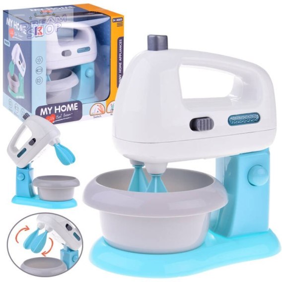 Robot kuchenny to niezbędny sprzęt do wyposażenia każdej kuchni małej gospodyni, gospodarza. Zabawka posiada obrotowe mieszadełka, zdejmowaną miskę oraz stojak. Podczas pracy robota słychać charakterystyczny szum mieszania i świeci się niebieskie światełko sygnalizujące pracę robota. Zabawkę można ściągnąć ze stojaka wciskając jednocześnie dwa guziki znajdujące się na stojaku i używać go, trzymając w ręce. Dzieci uwielbiają naśladować swoich rodziców przy pracy w kuchni, choć nie mogą posługiwać się urządzeniami dla dorosłych. Dzięki tej zabawce zapewnimy małym kucharzom mnóstwo frajdy z czasu spędzonego razem w kuchni :)