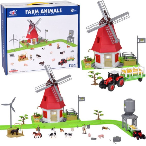 SERIA ZWIERZĘTA FARMA Zestaw WIATRAK młyn 101ele figurki ZA5688
