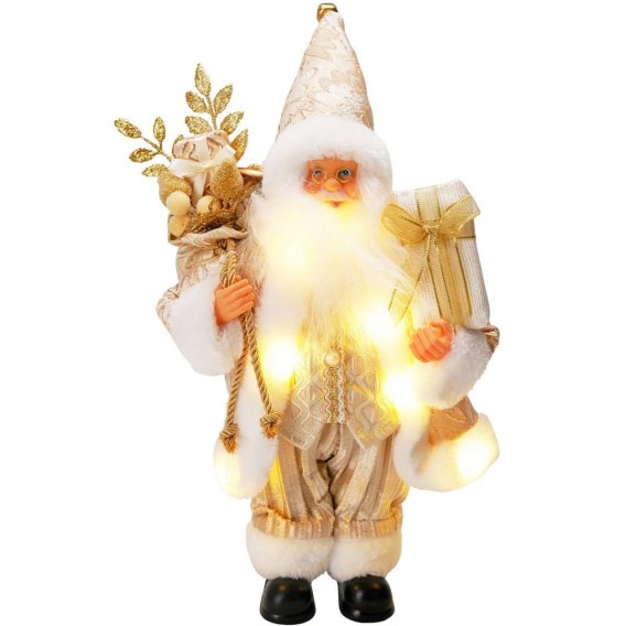 Złoty blask świąt w Twoim domu! Święty Mikołaj 30 cm ze światłem LED to dekoracja, która łączy magię świąt z elegancją. Delikatne oświetlenie, złote zdobienia i perfekcyjne wykonanie sprawią, że każda chwila w grudniu nabierze wyjątkowego charakteru.