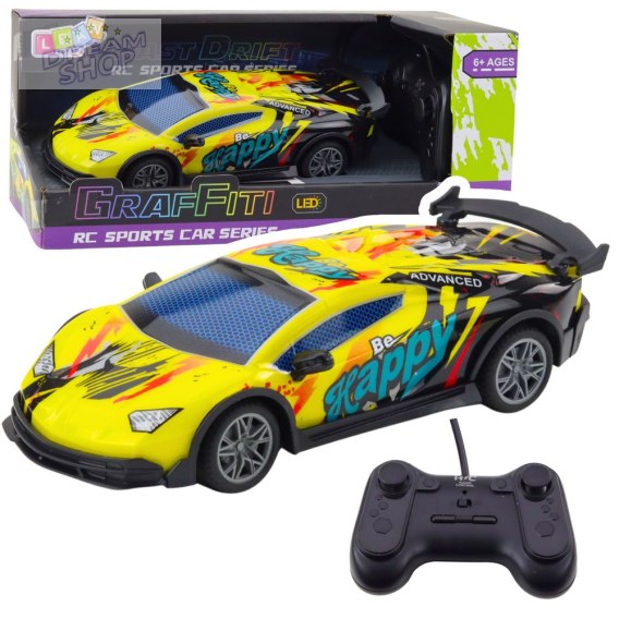 Zdalnie sterowany samochód sportowy w skali 1:22 to świetna propozycja dla dzieci, które marzą o własnym wyścigowym modelu. Nowoczesny design w żywych kolorach, ozdobiony dynamicznymi grafikami i hasłami w stylu graffiti przyciąga uwagę i nadaje pojazdowi wyjątkowego charakteru. Sportowa sylwetka oraz detale nadwozia sprawiają, że model prezentuje się wyjątkowo efektownie - nie tylko podczas jazdy, ale również jako eksponat na półce.