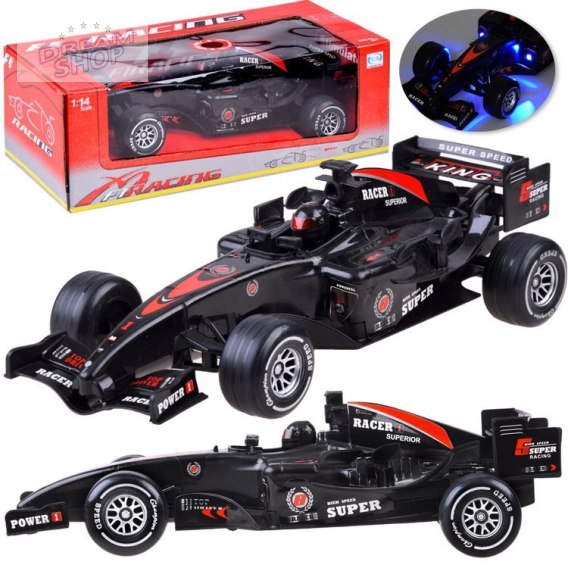 Wyścigowa formuła to idealna propozycja dla wszystkich wielbicieli szybkich rajdowych samochodów. Samochód został bardzo starannie i estetycznie wykonany w całości z plastiku z dbałością o najmniejsze szczegóły co na pewno zachwyci każdego małego rajdowca. Formuła porusza się poprzez rozpędzenie zabawki na gładkiej powierzchni do przodu. Autko posiada efekty dźwiękowe i świetlne. Po dociśnięciu kierowcy formuły zacznie wydobywać się dźwięk odpalanego silnika i efektów jazdy takich jak pisk opon. Dodatkową atrakcją podczas zabawy będą migające światła z przodu pojazdu, dzięki czemu zabawa stanie się jeszcze bardziej realistyczna.