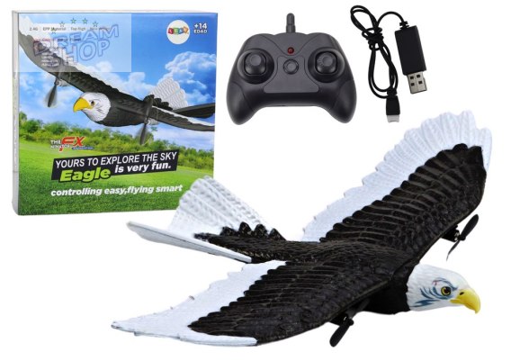 Zdalnie Sterowany Orzeł. Styropianowy samolot w kształcie ptaka, czas lotu 10-15 min po pełnym naładowaniu. Sterowanie za pomocą pilota 2.4G. Do zestawu dołączone kółka startowe. Doskonały prezent dla miłośników lotnictwa!