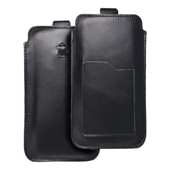 Skórzany futerał uniwersalny / wsuwka z pull-up - ROYAL / czarny - Rozmiar 2XL+wide - SAMSUNG A12 / NOTE 9 / XIAOMI REDMI NOTE 1