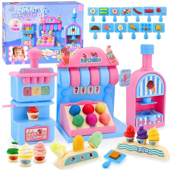 Pastelowy zestaw, masa plastyczna, ciastolina, plastelina, sklepik, bistro, cukiernia, słodycze, foremki, waga, wyciskarka, lody, lodziarnia, naklejki, dużo akcesoriów cukierniczych i foremek